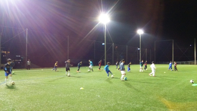 テスト期間中の中学校が多かったため中学生の参加が少なかったのですが、高校を卒業したばかりの選手達の参加があり、中学生のトレーニングに入ってくれました。小6、中1&中2、GKの3グループでトレーニングを行いました。